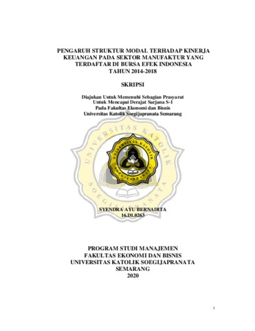 BERNADITA, SYENDRA AYU (2020) PENGARUH STRUKTUR MODAL TERHADAP KINERJA KEUANGAN PADA SEKTOR MANUFAKTUR YANG TERDAFTAR DI BURSA EFEK INDONESIA TAHUN 2014-2018. Other thesis, Unika Soegijapranata Semarang.