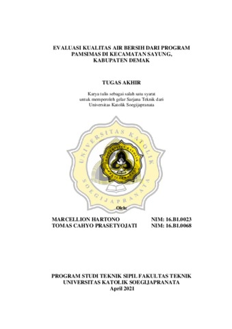 Hartono, Marcellion and Prasetyojati, Tomas Cahyo (2021) EVALUASI KUALITAS AIR BERSIH DARI PROGRAM PAMSIMAS DI KECAMATAN SAYUNG, KABUPATEN DEMAK. Other thesis, Universitas Katholik Soegijapranata Semarang.