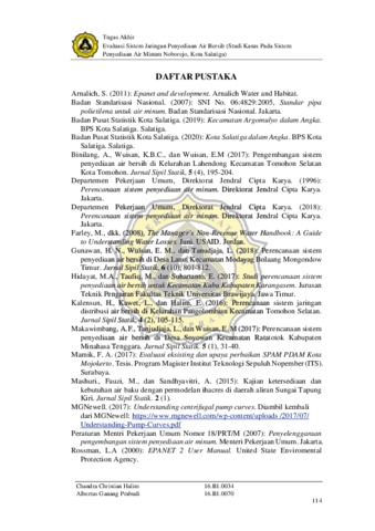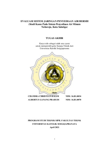 Halim, Chandra Christian and Prabudi, Albertus Ganang (2021) EVALUASI SISTEM JARINGAN PENYEDIAAN AIR BERSIH (Studi Kasus Pada Sistem Penyediaan Air Minum Noborejo, Kota Salatiga). Other thesis, Universitas Katholik Soegijapranata Semarang.