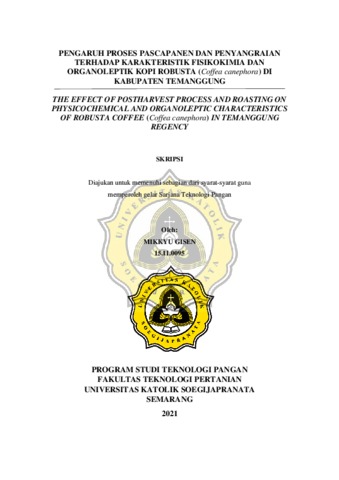 GISEN, MIKKYU (2021) PENGARUH PROSES PASCAPANEN DAN PENYANGRAIAN TERHADAP KARAKTERISTIK FISIKOKIMIA DAN ORGANOLEPTIK KOPI ROBUSTA (Coffea canephora) DI KABUPATEN TEMANGGUNG. Other thesis, Universitas Katholik Soegijapranata Semarang.