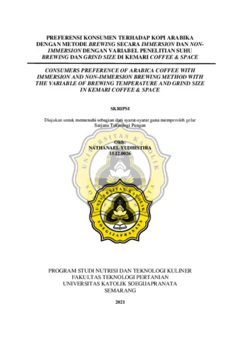 YUDHISTIRA, NATHANAEL (2021) PREFERENSI KONSUMEN TERHADAP KOPI ARABIKA DENGAN METODE BREWING SECARA IMMERSION DAN NON-IMMERSION DENGAN VARIABEL PENELITIAN SUHU BREWING DAN GRIND SIZE DI KEMARI COFFEE & SPACE. Other thesis, Universitas Katholik Soegijapranata Semarang.