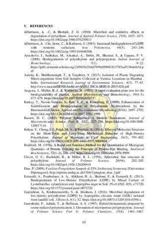 Plastic is one of the products derived from petrochemical industries that is synthetically made by combining the monomers and added chemical additives to make it into long polymeric chains. One example of plastics is polyethylene that is primarily used in the food packaging industry. Polyethylene is one type of plastic that recalcitrant to degrade naturally; that is why many researchers are focusing on finding the potential microorganisms that suitable to degrade polyethylene material. A number of bacterial species have been identified as the ability to degrade polyethylene, namely Proteus vulgaris, Pseudomonas putida, Bacillus subtilis, Pseudomonas aeruginosa, Brevibacillus parabrevis, Brevibacillus borstelensis, and many others. Also, there are some species from fungi that are able to degrade polyethylene material such as Aspergillus niger, Aspergillus falvus, Aspergillus glaucus, Penicillium frequentans, Penicillium pinophilum, Mucor circinelloides, etc. A few species from Actinomycetes are also known for their ability to degrade polyethylene such as Streptomyces and Nocardia asteroides. Those bacteria and fungi species, each of them has different ability in biodegradation depends on the supporting factor such as composition and structure of the polymer, molecular weight, crystallinity, hydrophobic character, environment condition, the ability of biofilm formation, additives, surfactant, and pretreatment to microorganism or polymer. However, the biodegradation mechanism from each microorganism will affect the effectiveness of the biodegradation process. The biodegradation mechanisms from bacteria ares by forming a biofilm on the plastic surface and secreting the extracellular enzyme that will scrape the polymer surface, while the mechanism from fungi is by using their hyphae to penetrate the polymer matrix and destroy it from the inside. Another research has found that bacteria-fungi consortium effectively maximizes the biodegradation process. The reason is that fungi will grow the hyphae to damage the polymer structure to the inside, while bacteria can easily penetrate and secrete extracellular enzymes. However, until today it is hard to know or conclude the most efficient microorganism to degrade polyethylene because of the differences of factors and conditions that affect every research. There is a need for more research about the most suitable combination of biodegradation assessment to achieve the high accuracy result to calculate the biodegradation rate.