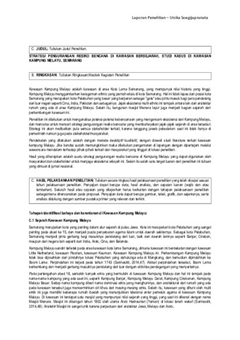 Susanti, B. Tyas and Sunarimahingsih, Yulita Titik and Dewi, Yustina Trihoni Nalesti STRATEGI PENGURANGAN RESIKO BENCANA DI KAWASAN BERSEJARAH, STUDI KASUS DI KAWASAN KAMPUNG MELAYU, SEMARANG. Other. LPPM Unika Soegijapranata, Semarang, Indonesia. (Unpublished)