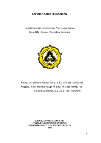 Butar Butar, Sansaloni and Palupi M, Monika and Susilawati, Clara and Christa, Ferdy and Sinaga, Cilvia Grestin (2021) Inventarisasi dan Estimasi Nilai Aset Gereja Kristen Jawa (GKJ) Kramas, Tembalang, Semarang. Perpustakaan Universitas Katolik Soegijapranata, Semarang, Indonesia. (Unpublished)