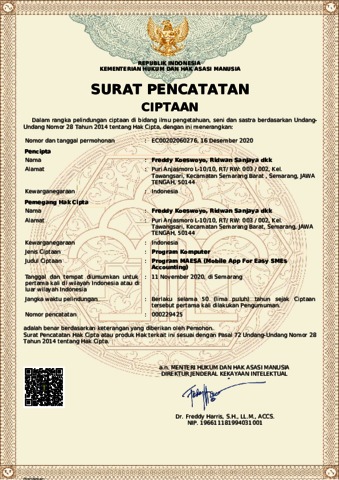 freddy koeswoyo, freddy and Ridwan, Sanjaya and Theresia Dwi Hastuti, Theresia (2020) HKI program maesa. kementrian hukum dan hak asasi manusia. (Unpublished)