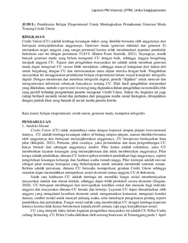 ADIWENA, BARTOLOMEUS YOFANA (2021) Pendekatan Belajar Eksperiensial Untuk Meningkatkan Pemahaman Generasi Muda Tentang Credit Union. Project Report. Unika Soegijapranata. (Unpublished)