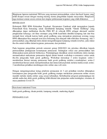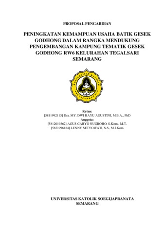 AGUSTINI, MARIA YOSEPHINE DWI HAYU and Nugroho, Agus Cahyo and Setyowati, Lenny Peningkatan Kemampuan Usaha Batik Gesek Godhong Dalam Rangka Mendukung Pengembangan Kampung tematik Gesek Godhong RW6 Kelurahan Tegalsari Semarang. LPPM Unika Soegijapranata. (Unpublished)