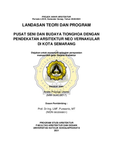 Utomo, Andre Prayogo (2021) PUSAT SENI DAN BUDAYA TIONGHOA DENGAN PENDEKATAN ARSITEKTUR NEO VERNAKULAR DI KOTA SEMARANG. Other thesis, Unika Soegijapranata.