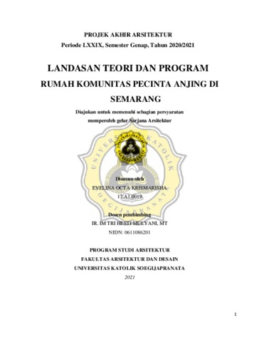 KRISMARISHA, EVELINA OCTA (2021) RUMAH KOMUNITAS PECINTA ANJING DI SEMARANG. Other thesis, Unika Soegijapranata.