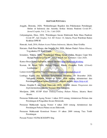 Penelitian dengan judul “Tinjauan tentang Proses Pembuktian Tindak Pidana Pencurian yang Dilaksanakan Melalui Persidangan Secara Online (Studi Kasus Putusan Nomor 192/Pid.B/2020/PN Smg di Pengadilan Negeri Semarang)” ini bertujuan untuk: (1) mengetahui dasar hukum pertimbangan Hakim memeriksa dan melaksanakan proses persidangan pembuktian tindak pidana pencurian secara online; (2) mengetahui proses pembuktian tindak pidana pencurian yang dilaksanakan melalui persidangan secara online ; dan (3) mengetahui hambatan yang ditemui hakim dalam proses pembuktian tindak pidana pencurian yang dilaksanakan melalui persidangan secara online di Pengadilan Negeri Semarang. Metode pendekatan yang digunakan dalam penelitian ini adalah metode kualitatif dengan spesifikasi penelitian deskriptif analisis. Data pada penelitian ini dikumpulkan dengan melakukan studi kepustakaan dan wawancara. Analisis dalam penelitian ini dilakukan dengan menggunakan analisis kualitatif. Hasil penelitian dan pembahasan menunjukan bahwa dasar hukum dilaksanakannya proses persidangan tindak pidana pencurian di Pengadilan Negeri Semarang secara online adalah Undang-Undang No. 8 tahun 1981 tentang Kitab Undang-Undang Hukum Acara Pidana (KUHAP) dan PERMA No. 4 Tahun 2020. PERMA ini diterbitkan karena adanya keadaan yang mendesak atau terjadinya suatu bencana pandemi Coronavirus Disease 2019 (Covid-19) demi mencegah rantai penularannya di lingkungan pengadilan. Proses persidangan dan pembuktian berupa pemeriksaan alat bukti perkara tindak pidana pencurian Putusan No. 192/Pid.b/2020/PN Smg dilaksanakan secara online melalui cara videoconference. Ditemui hambatan-hambatan bagi hakim dalam mengadili perkara Putusan No. 192/Pid.b/2020/PN Smg, terutama dalam proses pembuktian secara online ini yakni masalah sarana-prasarana, terutama sinyal internet. Saran Penulis, sebagai upaya memutus mata rantai penularan Coronavirus Disease 2019 (Covid 19) proses persidangan secara elektronik ternyata dapat membantu aparatur pengadilan dan para pencari keadilan. Dalam upaya mewujudkan proses persidangan secara elektronik yang efektif pemerintah perlu mempersiapkan sarana-prasarana yang lebih baik dan melakukan pemerataan fasilitas infrastruktur yang memadai pada institusi peradilan dan lembaga lain yang turut serta berpartisipasi dalam persidangan elektronik guna mengurangi hambatan-hambatan yang mungkin terjadi pada saat sidang berlangsung.