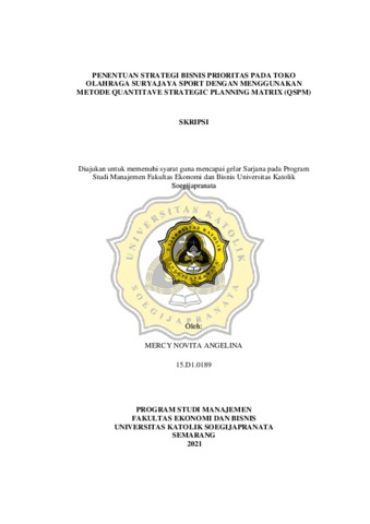 ANGELINA, MERCY NOVITA (2021) PENENTUAN STRATEGI BISNIS PRIORITAS PADA TOKO OLAHRAGA SURYAJAYA SPORT DENGAN MENGGUNAKAN METODE QUANTITAVE STRATEGIC PLANNING MATRIX (QSPM). Other thesis, Universitas Katholik Soegijapranata Semarang.