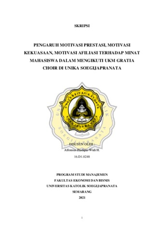 PENGARUH MOTIVASI PRESTASI, MOTIVASI KEKUASAAN, MOTIVASI AFILIASI TERHADAP MINAT MAHASISWA DALAM MENGIKUTI UKM GRATIA CHOIR DI UNIKA SOEGIJAPRANATA