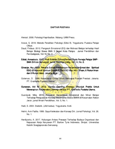 Wirati, Stevani Isay (2021) HUBUNGAN ANTARA KONSEP DIRI DENGAN KECERDASAN EMOSIONAL PADA SISWA SMA. Other thesis, Universitas Katholik Soegijapranata Semarang.