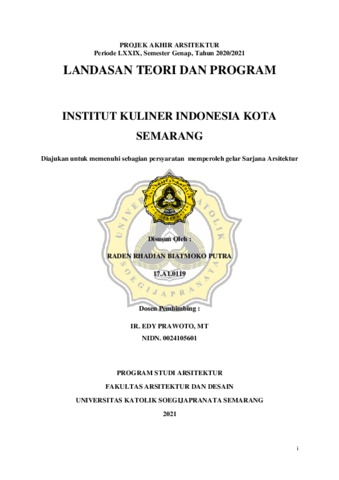 Putra, Raden Rhadian Biatmoko (2021) INSTITUT KULINER INDONESIA KOTA SEMARANG. Other thesis, Unika Soegijapranata.