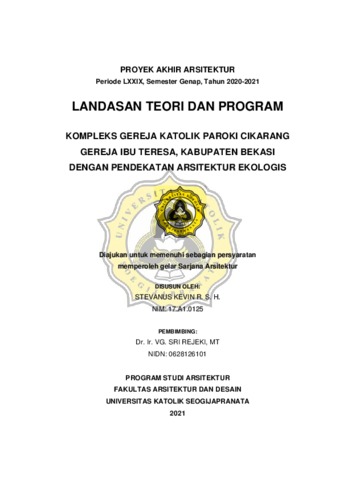 R. S. H., STEVANUS KEVIN (2021) KOMPLEKS GEREJA KATOLIK PAROKI CIKARANG GEREJA IBU TERESA, KABUPATEN BEKASI DENGAN PENDEKATAN ARSITEKTUR EKOLOGIS. Other thesis, Unika Soegijapranata.