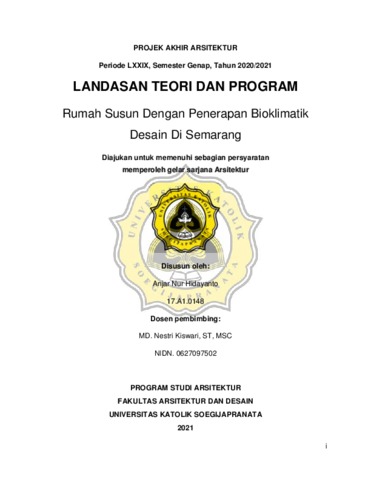 Hidayanto, Anjar Nur (2021) Rumah Susun Dengan Penerapan Bioklimatik Desain Di Semarang. Other thesis, Unika Soegijapranata.