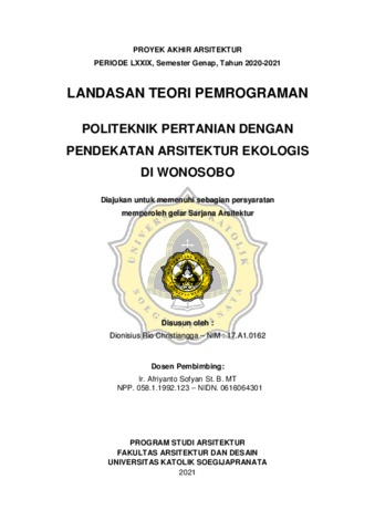 Christiangga, Dionisius Rio (2021) POLITEKNIK PERTANIAN DENGAN PENDEKATAN ARSITEKTUR EKOLOGIS. Other thesis, Unika Soegijapranata.