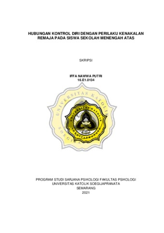 PUTRI, IFFA NAWWA (2021) HUBUNGAN KONTROL DIRI DENGAN PERILAKU KENAKALAN REMAJA PADA SISWA SEKOLAH MENENGAH ATAS. Other thesis, Universitas Katholik Soegijapranata Semarang.