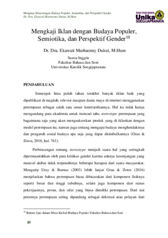 Dukut, Ekawati Marhaenny (2020) Mengkaji Iklan dengan Budaya Populer, Semiotika dan Perspektif Gender. In: Perempuan Lintas Ilmu: Bunga Rampai Bahan Ajar Berperspektif Gender. Universitas Katolik Soegijapranata 2020, pp. 89-110. ISBN 978-623-7635-32-1 (Unpublished)