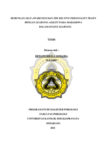 ALMAIDA, DEWANI SHEILA (2021) HUBUNGAN SELF-AWARENESS DAN THE BIG FIVE PERSONALITY TRAITS DENGAN LEARNING AGILITY PADA MAHASISWA DALAM ONLINE LEARNING. Masters thesis, Universitas Katholik Soegijapranata Semarang.