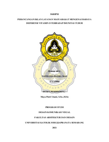 Mae, Nathania Elora (2021) PERANCANGAN IKLAN LAYANAN MASYARAKAT MENGENAI BAHAYA DEFISIENSI VITAMIN D TERHADAP IMUNITAS TUBUH. Other thesis, Unika Soegijapranata.