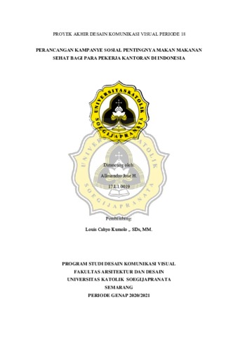 Jose H., Allesandro (2021) PERANCANGAN KAMPANYE SOSIAL PENTINGNYA MAKAN MAKANAN SEHAT BAGI PARA PEKERJA KANTORAN DI INDONESIA. Other thesis, Unika Soegijapranata.