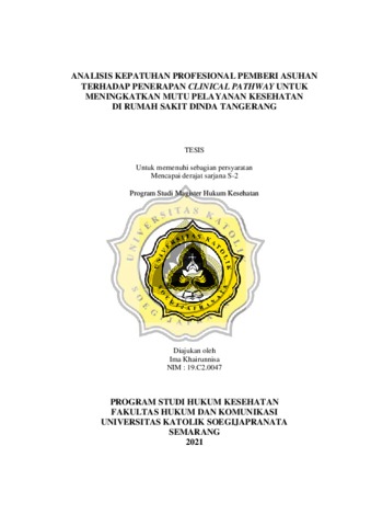 Rumah Sakit Dinda Tangerang telah memiliki peraturan internal terkait kebijakan penerapan clinical pathway dalam asuhan terintegrasi. Clinical pathway yang sudah diterapkan diantaranya Hernia Inguinalis Non Komplikata, Neonatal Infeksi, Stroke Non Hemoragik dan Demam Tifoid pada dewasa. Penelitian ini bertujuan untuk mengetahui kepatuhan professional pemberi asuhan terhadap penerapan clinical pathway. Metode yang digunakan adalah metode kualitatif dengan teknik wawancara dan telaah dokumen. Subyek penelitian dalam tesis ini adalah dokter spesialis anak, penyakit dalam, dokter spesialis bedah saraf, dokter umum, perawat, apoteker, ahli gizi, komite medis dan komite mutu. Kepatuhan profesional pemberi asuhan dinilai dari hasil telaah dokumen berkas rekam medis pada 20 pasien. Rumah Sakit Dinda telah menerapkan clinical pathway sebagai standar pelayanan rumah sakit, hal ini sesuai dengan Undang-Undang Nomor 44 Tahun 2009 dan SK Direktur Utama RS Dinda Nomor 204/SK/DIR/RSD/X/2016 tentang Kebijakan Penetapan clinical pathway. Hasil penelitian menunjukan bahwa dari empat clinical pathway yang sudah diterapkan tiga clinical pathway yang belum dilaksanakan sesuai standar, ada ketidakpatuhan professional pemberi asuhan. Clinical pathway Hernia Inguinalis Non Komplikata ketidakpatuhan terjadi pada variabel pemantauan luka operasi (25%) dan length of stay pasien 3 hari (45%). Neonatal Infeksi pada variabel pemberian antibiotik dan Stroke Non Hemoragik pada variabel pemeriksaan penunjang dan pengobatan. Diantara semua profesional pemberi asuhan, ketidakpatuhan lebih banyak dilakukan oleh profesi dokter, sehingga Permenkes Nomor 2052 Tahun 2011 tentang Izin Praktik dan Pelaksanaan Praktik Kedokteran dan Permenkes Nomor 1438 Tahun 2010 tentang Standar Pelayanan Kedokteran belum dilaksanakan sepenuhnya. Faktor penghambat dalam pelaksanaan clinical pathway diantaranya sarana penunjang medik yang belum sesuai, tarif jasa pelayanan rendah dan kurangnya pengetahuan serta ekonomi pasien. Sementara faktor pendukung adalah sarana dan prasarana yang memadai, dukungan direktur rumah sakit dan peraturan internal rumah sakit yang tegas. Upaya penerapan Ongoing Professional Practice Evaluation (OPPE) sangat diperlukan sebagai evaluasi penilaian dokter dalam pelaksanaan clinical pathway sesuai Standar Prosedur Operasional.