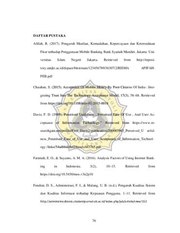 HARTONO, ALEXANDRA DEWI (2021) ANALISIS FAKTOR-FAKTOR YANG MEMPENGARUHI PENGGUNAAN APLIKASI MOBILE BANKING “JENIUS” PADA KONSUMEN BANK BTPN DI SEMARANG DENGAN PENDEKATAN TECHNONOLGY ACCEPTANCE MODEL (TAM). Other thesis, Universitas Katholik Soegijapranata Semarang.