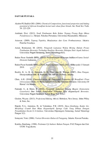 Anggraeni, Eightiani Devi (2021) PENGARUH PENAMBAHAN TEPUNG SUKUN DAN PROSES PEMANGGANGAN TERHADAP KARAKTERISTIK FISIK DAN SENSORI PADA BROWNIES PANGGANG THE EFFECT OF ADDITION OF BREADFRUIT FLOUR AND BAKING PROCESS ON PHYSICAL AND SENSORY CHARACTERISTICS OF BAKED BROWNIES. Other thesis, Universitas Katholik Soegijapranata Semarang.