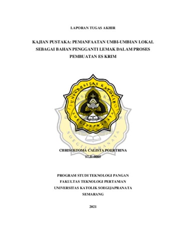 POERTRINA, CHRISOSTOMA CALISTA (2021) KAJIAN PUSTAKA: PEMANFAATAN UMBI-UMBIAN LOKAL SEBAGAI BAHAN PENGGANTI LEMAK DALAM PROSES PEMBUATAN ES KRIM. Other thesis, Universitas Katholik Soegijapranata Semarang.