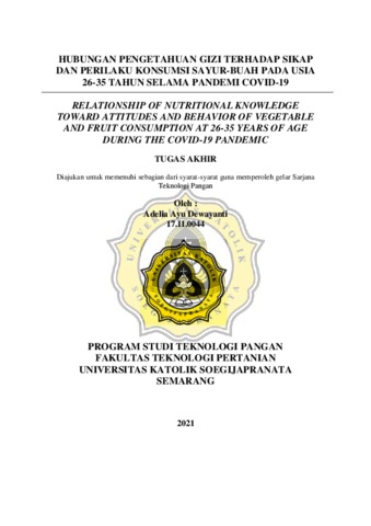 Dewayanti, Adelia Ayu (2021) HUBUNGAN PENGETAHUAN GIZI TERHADAP SIKAP DAN PERILAKU KONSUMSI SAYUR-BUAH PADA USIA 26-35 TAHUN SELAMA PANDEMI COVID-19. Other thesis, Universitas Katholik Soegijapranata Semarang.