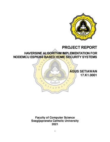 SETIAWAN, AGUS (2021) HAVERSINE ALGORITHM IMPLEMENTATION FOR NODEMCU ESP8266 BASED HOME SECURITY SYSTEMS. Other thesis, Universitas Katholik Soegijapranata Semarang.