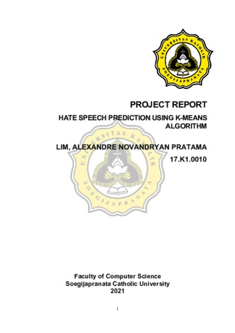 PRATAMA, LIM, ALEXANDRE NOVANDRYAN (2021) HATE SPEECH PREDICTION USING K-MEANS ALGORITHM. Other thesis, Universitas Katholik Soegijapranata Semarang.