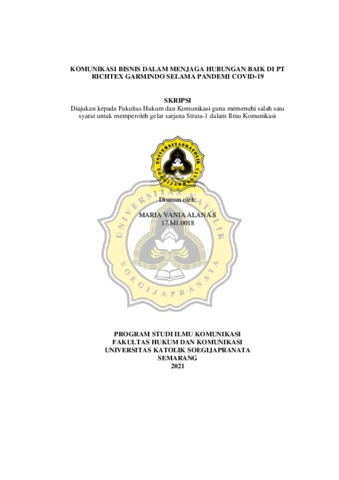 ALANA S, MARIA VANIA (2021) KOMUNIKASI BISNIS DALAM MENJAGA HUBUNGAN BAIK DI PT RICHTEX GARMINDO SELAMA PANDEMI COVID-19. Other thesis, Universitas Katholik Soegijapranata Semarang.