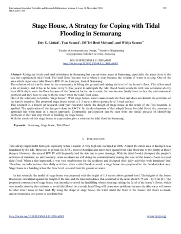 Listiati, Etty Endang and Susanti, B. Tyas and MULYANI, TRI HESTI and SUSENO, WIDIJA (2018) Stage House, A Strategy for Coping with Tidal Flooding in Semarang. International Journal of Scientific and Research Publications, 8 (11). pp. 789-797. ISSN 2250-3153