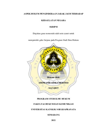 HERITEO, STEPHANIE CINKA (2021) ASPEK HUKUM PENGINDERAAN JARAK JAUH TERHADAP KEDAULATAN NEGARA. Other thesis, Universitas Katholik Soegijapranata Semarang.
