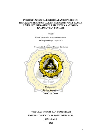 Anggraeni, Devina (2021) PERLINDUNGAN HAK KESEHATAN REPRODUKSI REMAJA PEREMPUAN DALAM PERKAWINAN DI BAWAH UMUR (STUDI KASUS DI KABUPATEN KATINGAN KALIMANTAN TENGAH). Masters thesis, Universitas Katholik Soegijapranata Semarang.