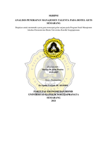 Pereira, Marcos De Jesus (2021) ANALISIS PENERAPAN MANAJEMEN TALENTA PADA HOTEL GETS SEMARANG. Other thesis, Universitas Katholik Soegijapranata Semarang.