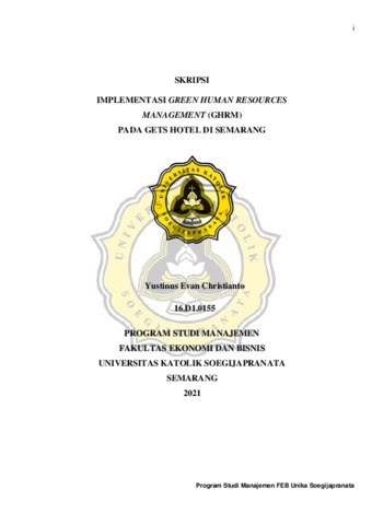 Christianto, Yustinus Evan (2021) IMPLEMENTASI GREEN HUMAN RESOURCES MANAGEMENT (GHRM) PADA GETS HOTEL DI SEMARANG. Other thesis, Universitas Katholik Soegijapranata Semarang.