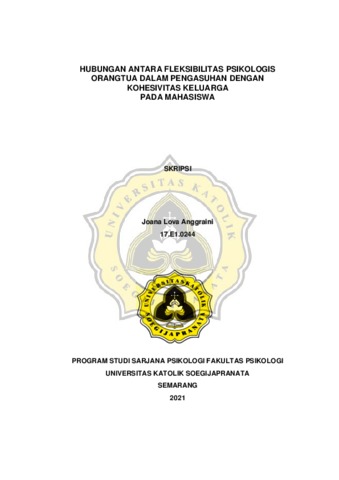 Anggraini, Joana Lova (2021) HUBUNGAN ANTARA FLEKSIBILITAS PSIKOLOGIS ORANGTUA DALAM PENGASUHAN DENGAN KOHESIVITAS KELUARGA PADA MAHASISWA. Other thesis, Universitas Katholik Soegijapranata Semarang.