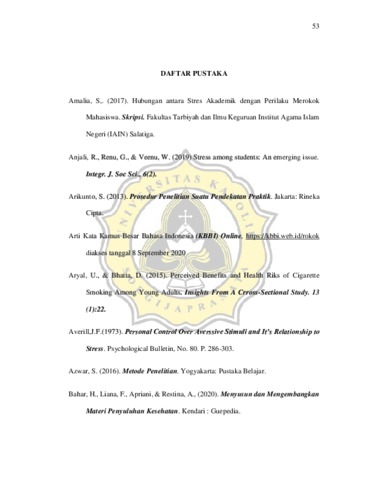 Corbafo, Fulgensia E Lay (2021) HUBUNGAN ANTARA STRES AKADEMIK DAN KONTROL DIRI DENGAN FREKUENSI MEROKOK PADA MAHASISWI. Masters thesis, Universitas Katholik Soegijapranata Semarang.