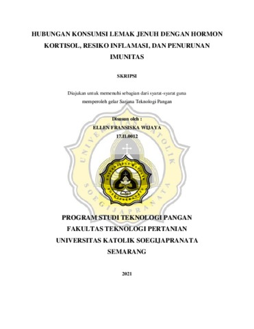 WIJAYA, ELLEN FRANSISKA (2021) HUBUNGAN KONSUMSI LEMAK JENUH DENGAN HORMON KORTISOL, RESIKO INFLAMASI, DAN PENURUNAN IMUNITAS. Other thesis, Universitas Katholik Soegijapranata Semarang.