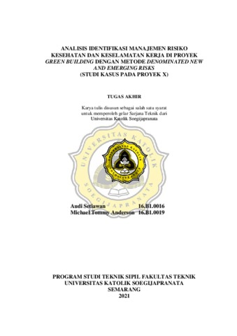 Setiawan, Audi and Anderson, Michael Tommy (2021) ANALISIS IDENTIFIKASI MANAJEMEN RISIKO KESEHATAN DAN KESELAMATAN KERJA DI PROYEK GREEN BUILDING DENGAN METODE DENOMINATED NEW AND EMERGING RISKS (STUDI KASUS PADA PROYEK X). Other thesis, Unika Soegijapranata Semarang.