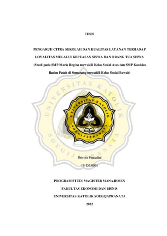 Pentadini, Febrine (2022) PENGARUH CITRA SEKOLAH DAN KUALITAS LAYANAN TERHADAP LOYALITAS MELALUI KEPUASAN SISWA DAN ORANG TUA SISWA (Studi pada SMP Maria Regina mewakili Kelas Sosial Atas dan SMP Kanisius Raden Patah di Semarang mewakili Kelas Sosial Bawah). Masters thesis, Universitas Katolik Soegijapranata.