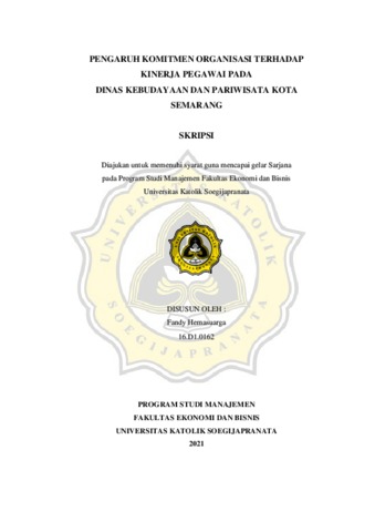 Hemasuarga, Hemasuarga (2022) PENGARUH KOMITMEN ORGANISASI TERHADAP KINERJA PEGAWAI PADA DINAS KEBUDAYAAN DAN PARIWISATA KOTA SEMARANG. Other thesis, Universitas Katolik Soegijapranata.