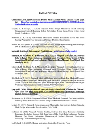 PRATAMA, DWIKI TINDRA (2022) PENGARUH MOTIVASI TERHADAP MINAT MAHASISWA AKUNTANSI DALAM MENGIKUTI UJIAN CPA DI KOTA SEMARANG. Other thesis, Universitas Katholik Soegijapranata Semarang.
