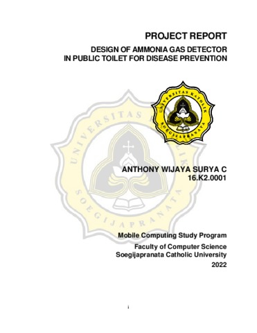 CHANDRA, ANTHONY WIJAYA SURYA (2022) DESIGN OF AMMONIA GAS DETECTOR IN PUBLIC TOILET FOR DISEASE PREVENTION. S1 thesis, Universitas Katholik Soegijapranata Semarang.