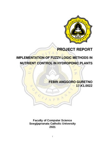 GURETNO, FEBRI ANGGORO (2022) IMPLEMENTATION OF FUZZY LOGIC METHODS IN NUTRIENT CONTROL IN HYDROPONIC PLANTS. S1 thesis, Universitas Katholik Soegijapranata Semarang.