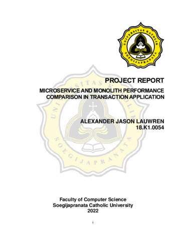 LAUWREN, ALEXANDER JASON (2022) MICROSERVICE AND MONOLITH PERFORMANCE COMPARISON IN TRANSACTION APPLICATION. S1 thesis, Universitas Katholik Soegijapranata Semarang.
