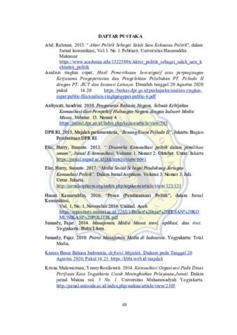 PRASETYA, DAVID (2022) KOMUNIKASI POLITIK ANGGOTA PANSUS PELINDO II DI MAJALAH PARLEMENTARIA TERBITAN SEPTEMBER 2015. S1 thesis, Universitas Katholik Soegijapranata Semarang.